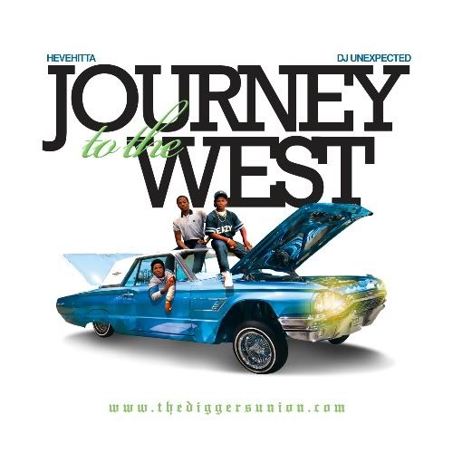 Hevehitta and DJ Unexpected of The Diggers Union (www.thediggersunion.com) are back once again with another great mixtape for the streets. Recently voted "Best Mixtape Team of the Mid-Year" in Foundation Magazine, Hevehitta and Unexpected decide to take a "Journey to the West" for their newest release. Featuring artists such as Nipsey Hussle, Jay Rock, Tupac Shakur, Ice Cube, Ice T, Roccet, Dr. Dre, Snoop Dogg, Eazy E, The Game, and many more, this mixtape is jam packed with that authentic California Hip Hop. As with any Hevehitta and DJ Unexpected mixtape, the little interludes and dialog throughout the mix gives the CD its own little story, giving you history on the West Coast, and the influences from it. Are you looking for something different to listen to? Than this is the CD for you!